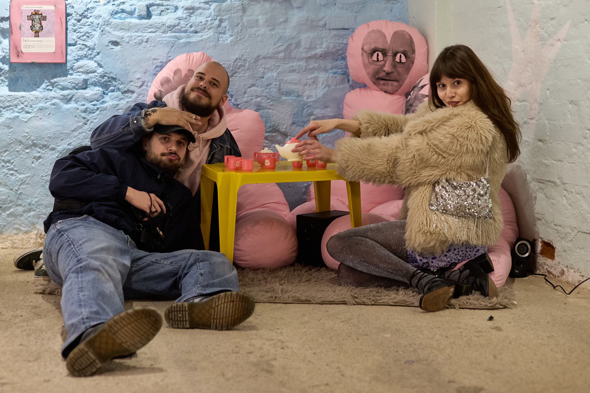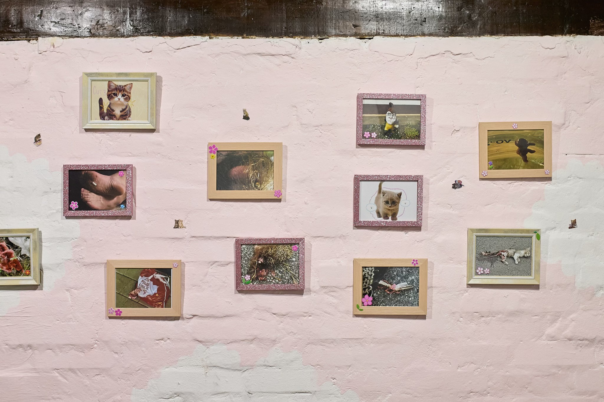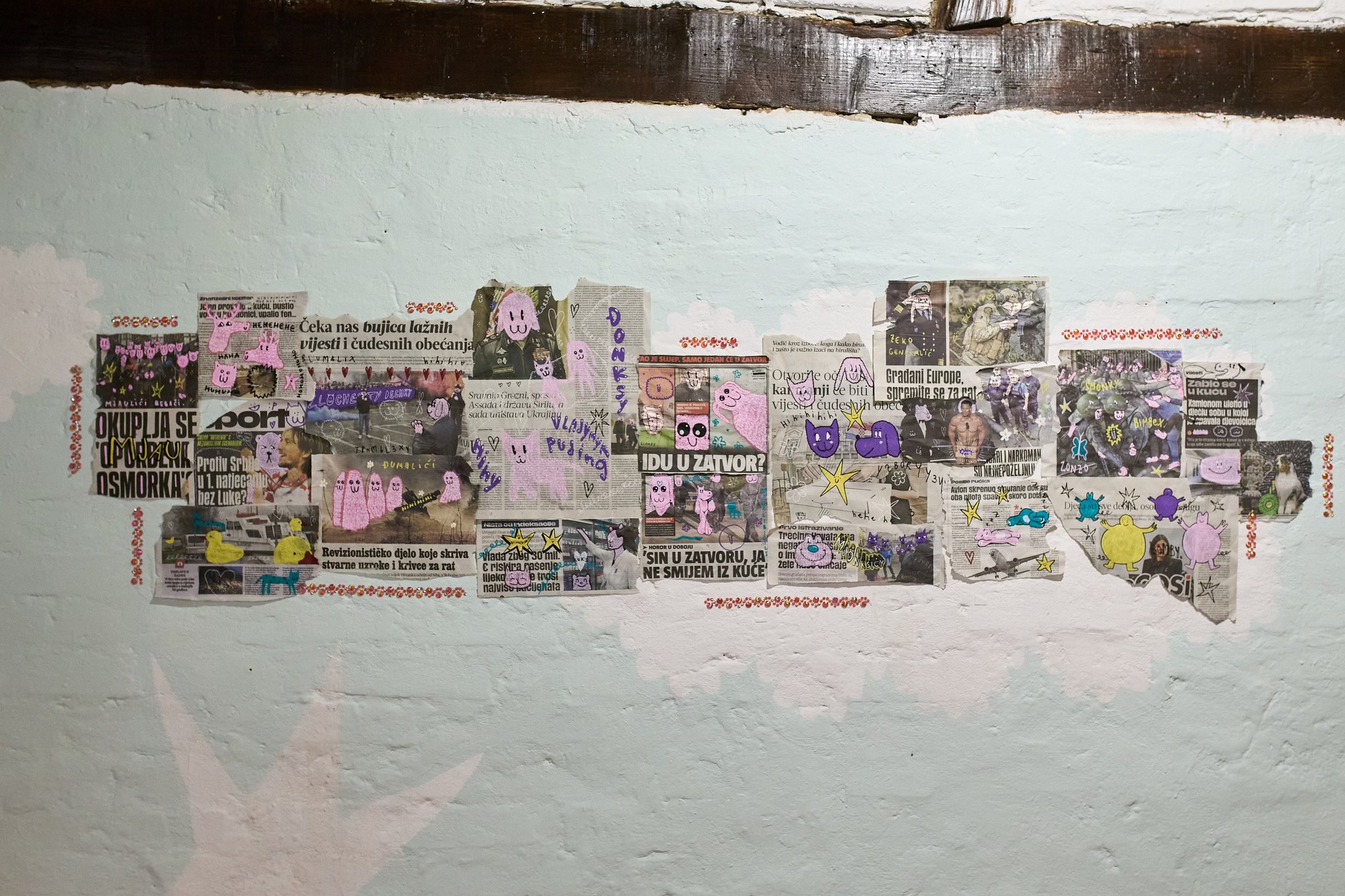 We are overwhelmed by the rise in popularity of cute stimuli: fluffy dogs, stuffed toys, playful cats and silly babies are just some of the visual content that evoke different physiological, behavioral and emotional reactions in people. Cuteness (jap. kawaii) is often associated with innocence and a sense of accessibility, but when that physical, affective response “Awww!” is manipulated for political or commercial purposes, it becomes an influential aesthetic category that can play a significant role in shaping public perception and influence decision-making processes. Through the exhibition titled with a cute emoji, Luka Tomić problematizes the relativization of information through the specific aestheticization of controversial political symbols and personalities, as well as environmental and other current social topics. Objects, characters or beings that are usually perceived as cute have certain characteristics, such as a small, soft body and an innocent smile, so Croatian politicians become huggable stuffed toys, and the black chronicle news full of cute animated characters. Considering that affective reactions can blur boundaries between subject and object, cute elements are allowed to appear alongside oppositional categories. In combination with “difficult” topics and content, a grotesque hybrid of works with conflicting meanings is created, resulting in equally mixed emotional reactions in the viewer. The saturation of information, obtained primarily through the popular distraction of scrolling, gradually equalizes the content and unconsciously encourages the point of view according to which good and evil are relative terms, so universal values and basic criteria for moral actions are lost. Through comical, disgusting, morbid and above all cute elements, the artist invites the viewer, reader and listener to become aware of obscured and trivialized information in which key political and economic issues are addressed.
