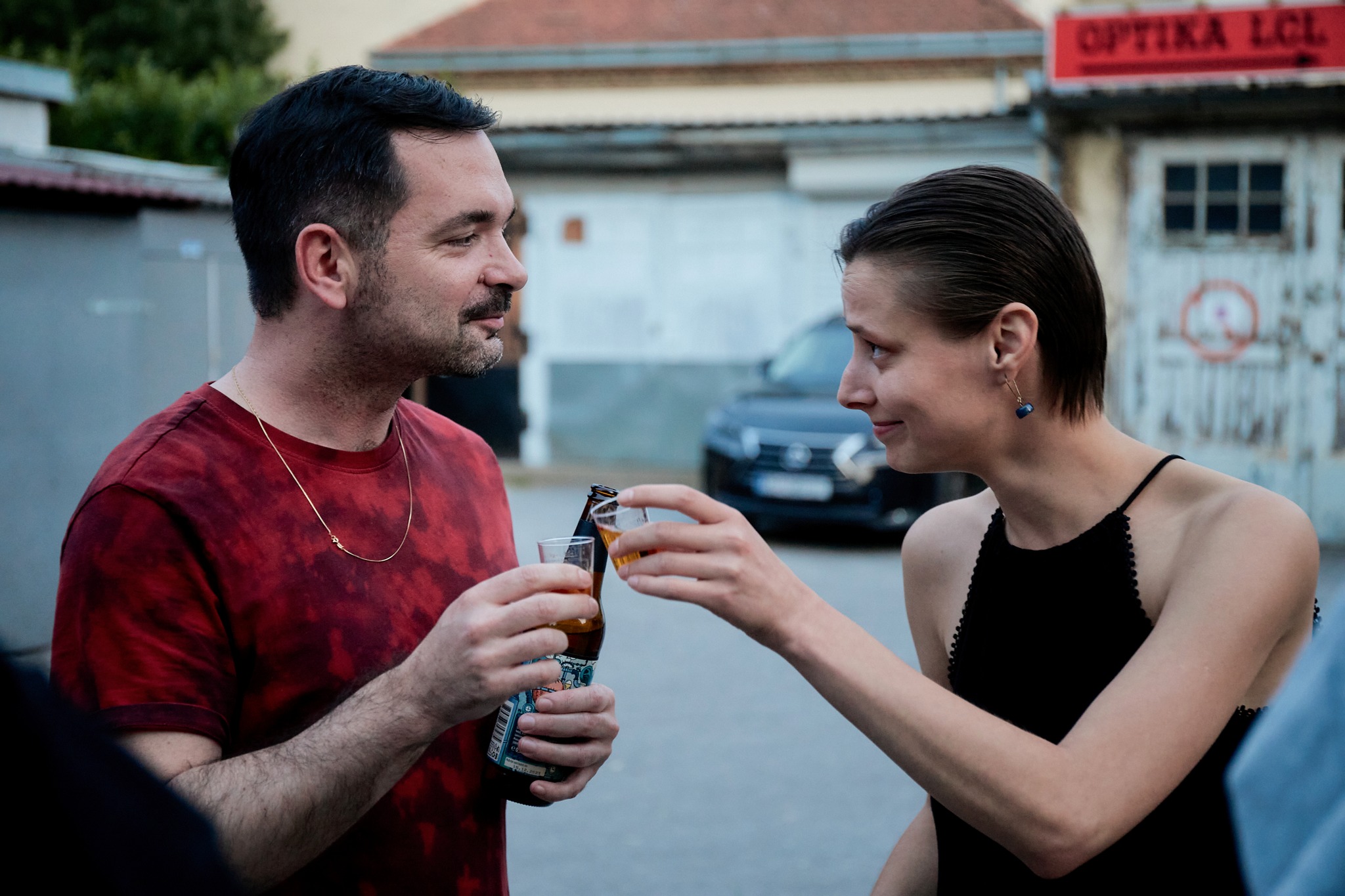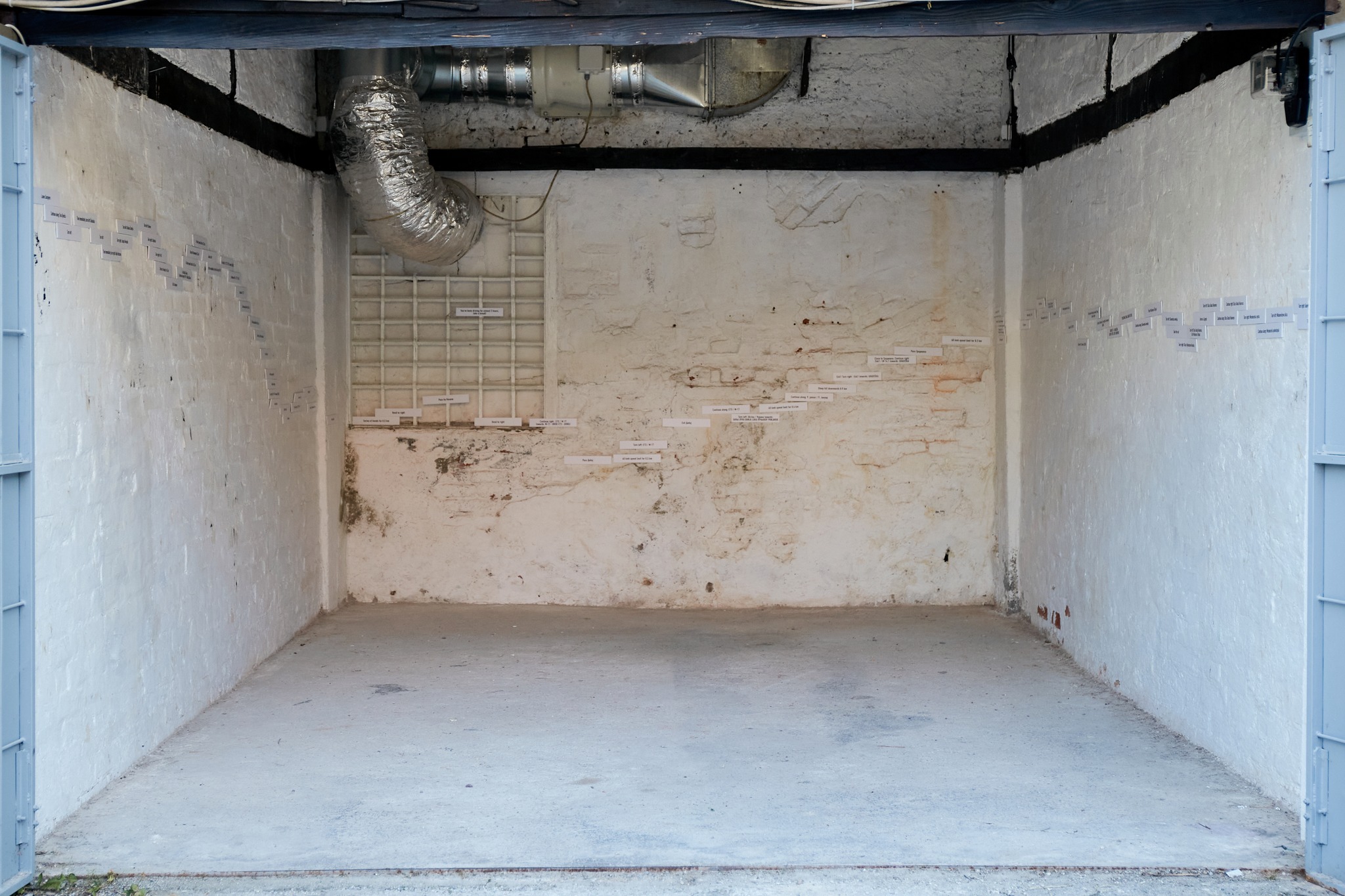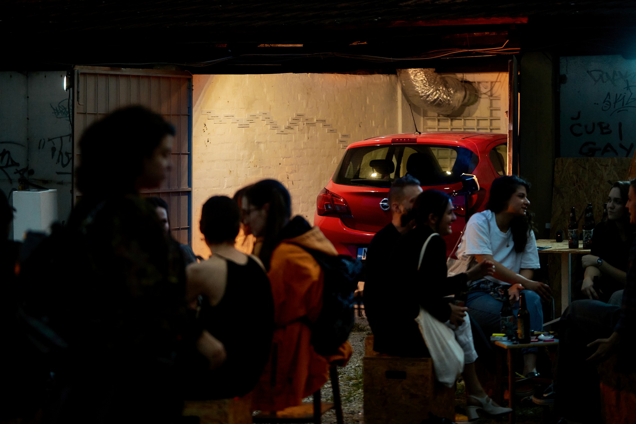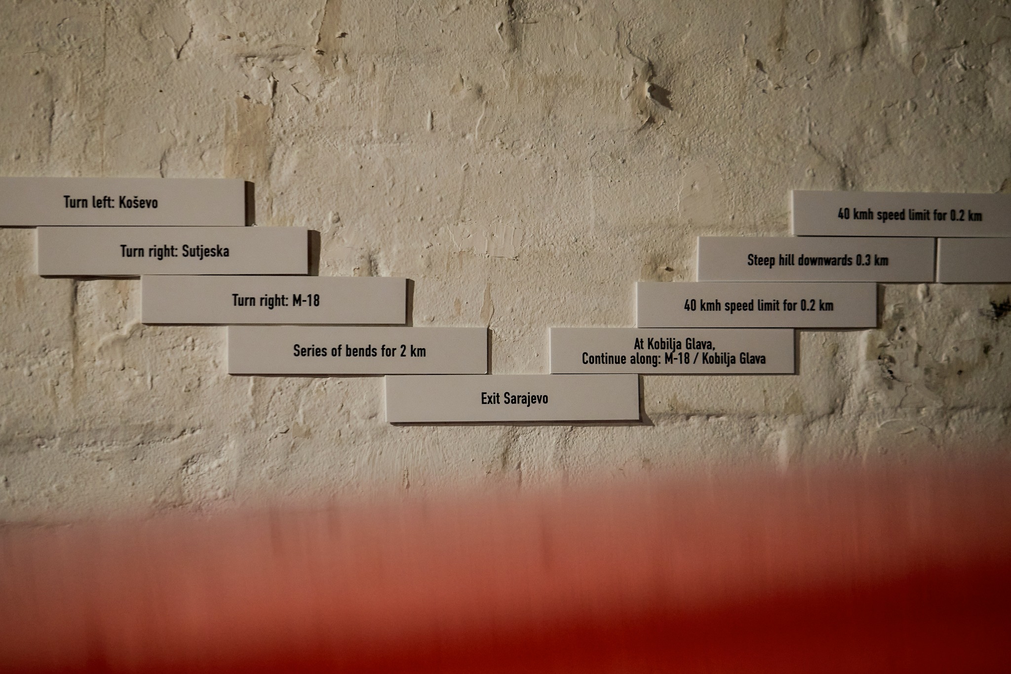The question of gaze is also crucial for the end of this performing in which the author knowingly draws unaware visitors. Namely, the act of travel is justified as artistic based on freely set gallery status of the garage. It is further intensified by marking the travel’s stage in a form of museum label. However, at the “peak” of the performance, in its resolution, the author’s presence and the act of parking return the space’s original axiom of a utility object, while simultaneously taking the view away from those eager to consider the process as well as the entirety. Therefore, there is nothing left but to raise a glass.