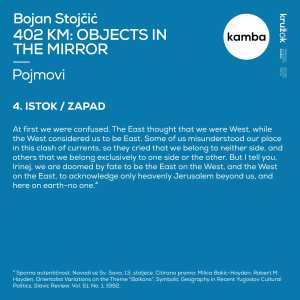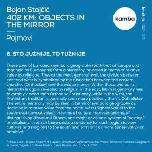 These lands – never completely or unequivocally defined, and with internal shifting of the border to the neighbour – are sources of generalisation, stereotyping and theorising. The Balkans were previously seen as an oriental and European Turkish region, as a source of barbarism and backwardness, and are still strongly semantically marked although through more neutral terms such as Southeast Europe and Western Balkans. Via periods of transition and then liberalisation and democratization, the areas of external influences today – both of geopolitics and constructing of new cultural values – have just been bluntly forced from one system to the different ones. Moreover and especially in the context of Bosnia and Herzegovina reality, interests of foreign policies are inscribed in internalised – apologies -as the state’s affairs.