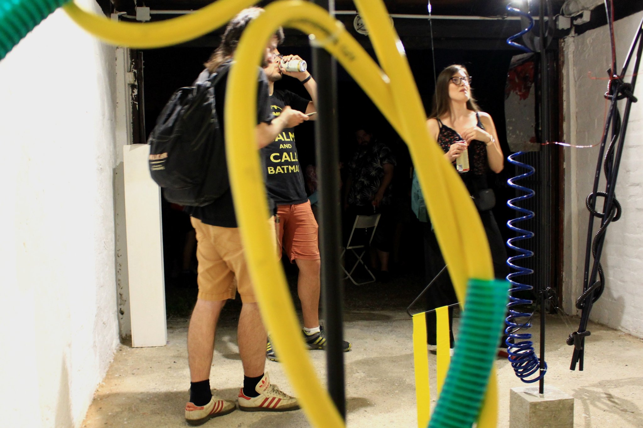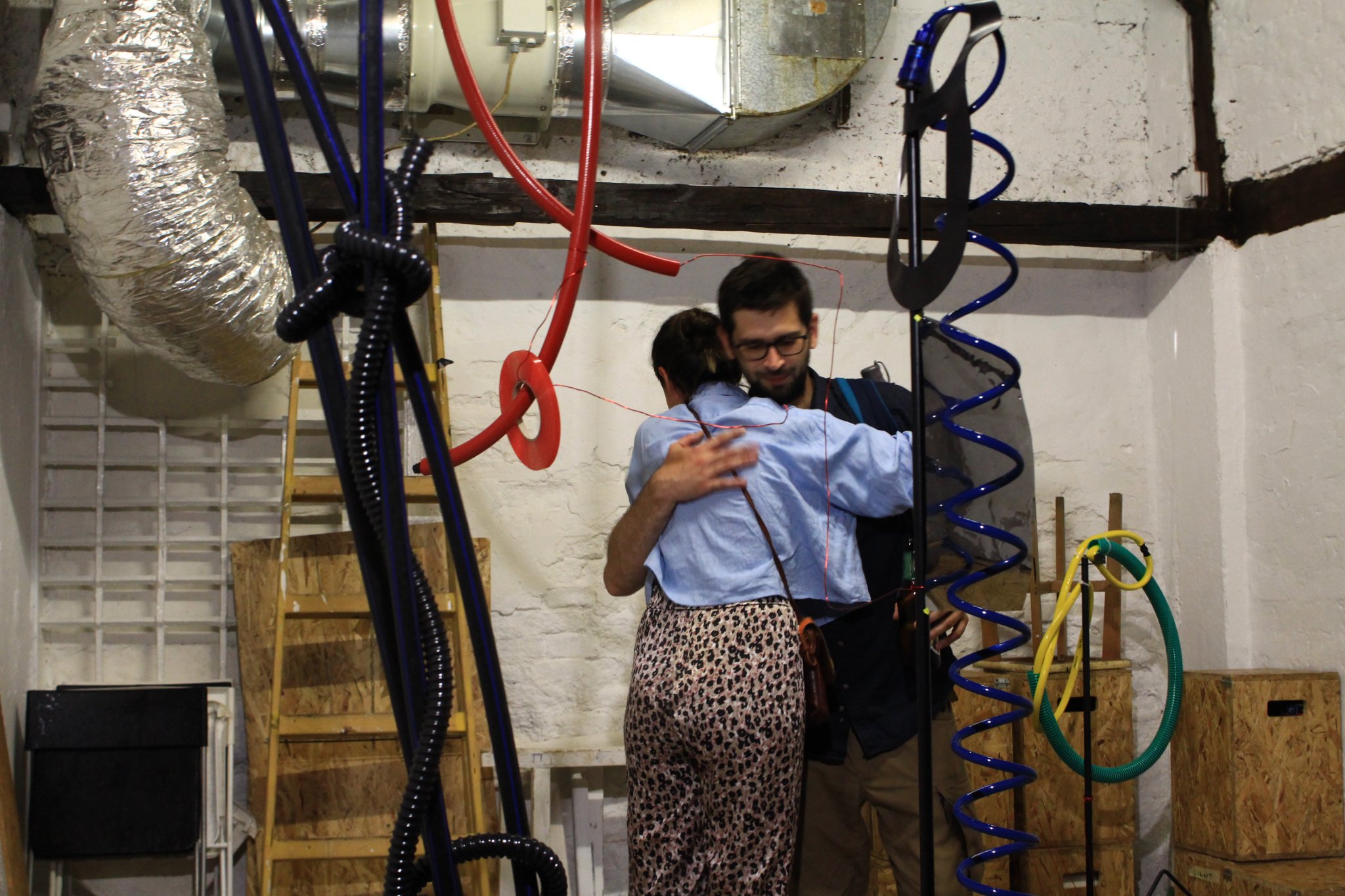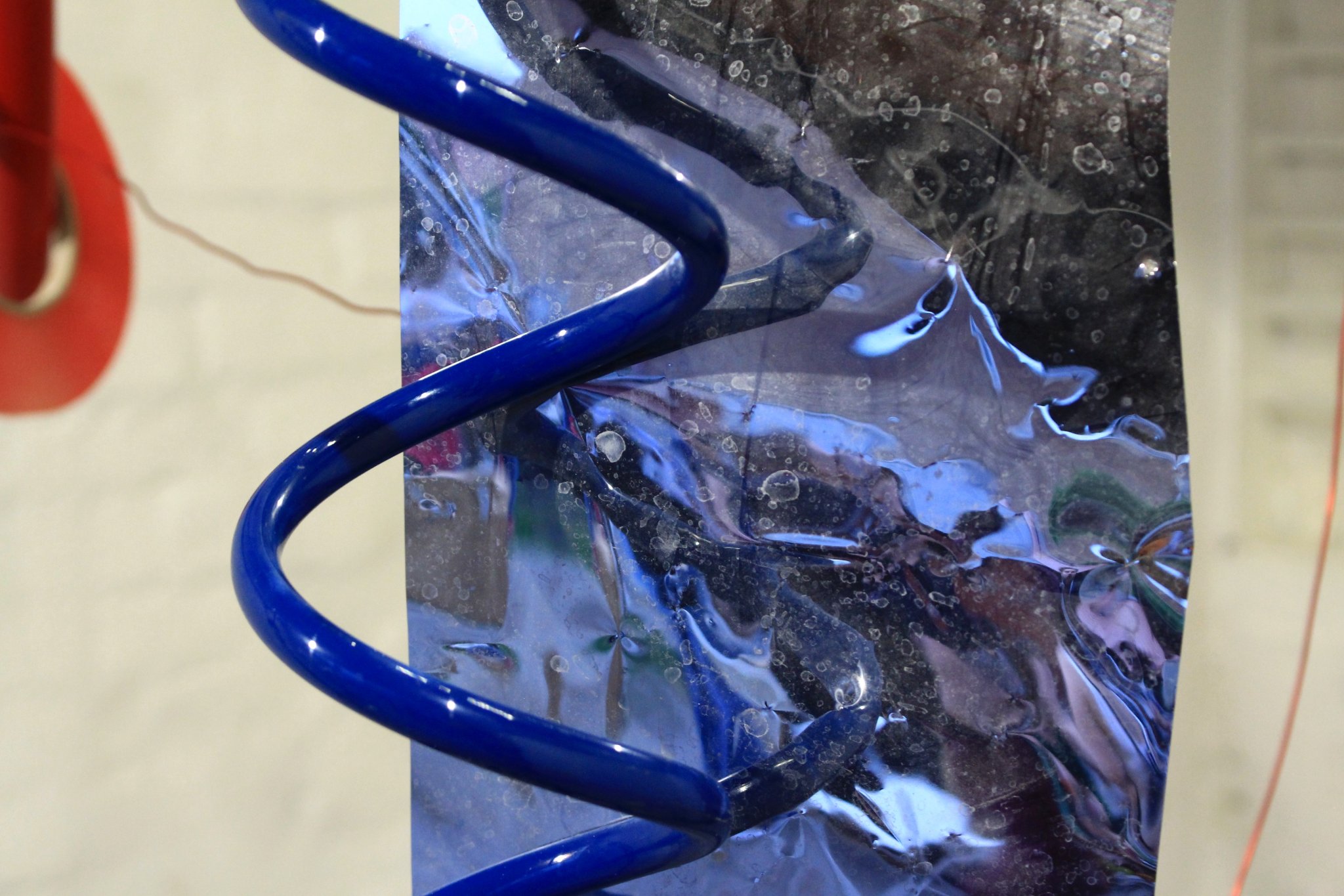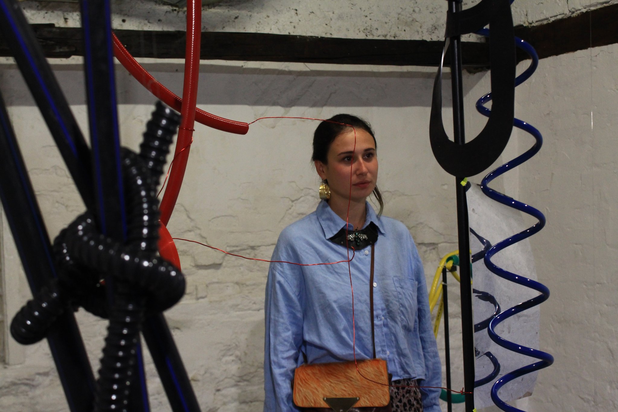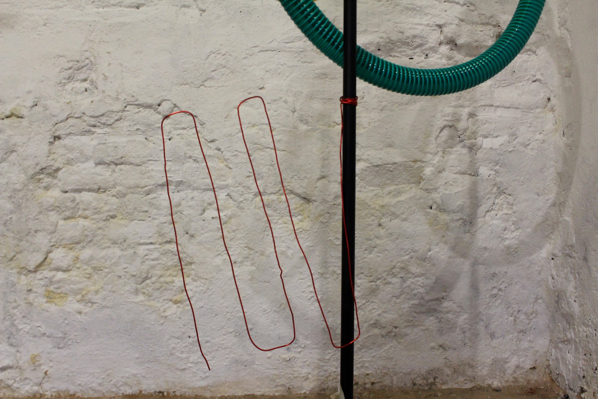 Precisely because of the author’s abstract approach, it calls for various interpretations. Speaking with my faculty colleagues without giving up too many details on Iva’s work, the work took on various interpretations: bag, huge swatter with the trajectory of a fly, cyclicality, bicycle chain, rabbit, watering flowers, or Noo Noo (Teletabis ‘ vacuum cleaner). At first glance, these are unrelated terms, associations resulting from experiences and impressions of different people, but they are brought together by a central term: a movement. Watering flowers in the garden require movement, a bag is a practical object that eases the transfer of more things from point A to point B, while a rabbit is an animal whose jumping is unpredictable. Inspired by music, the author creates her works, and her sculptures adapted connotations encourage observers’ unique viewpoints that always reflect a movement. With this exhibition, we are entering the dynamism, but unlike Giacomo Balle, we are not on a leash, but rather we’re given freedom of a particular movement, as much as it can be.