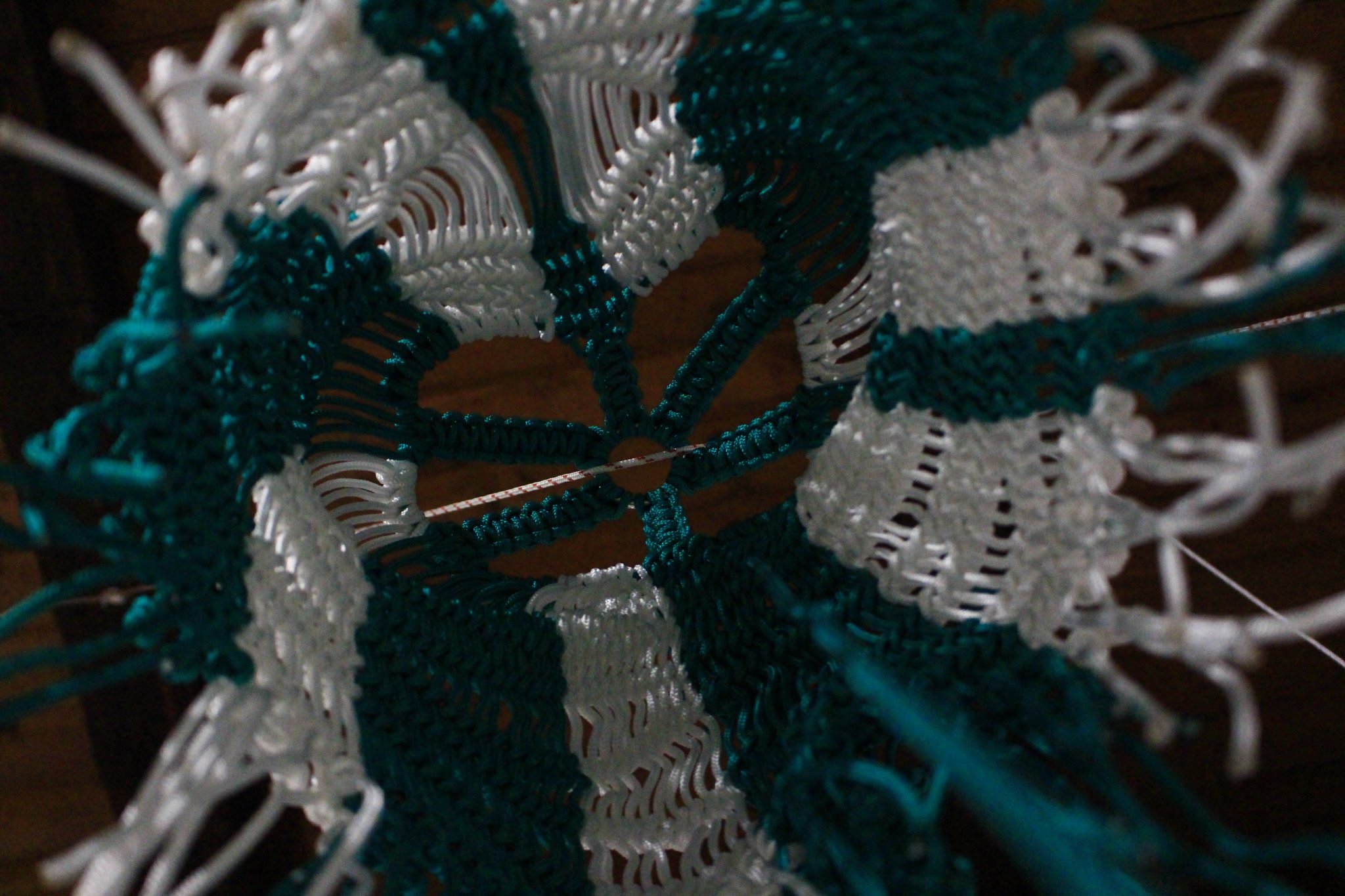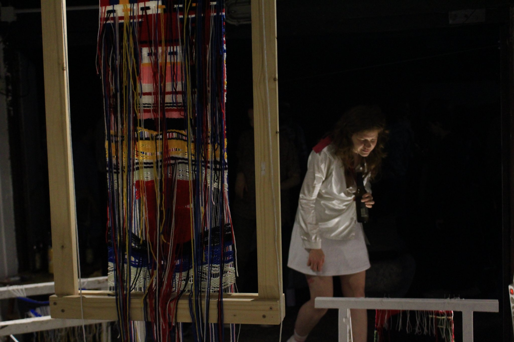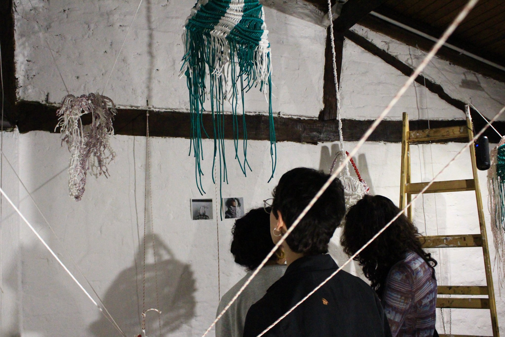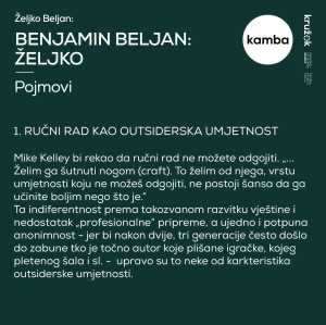 The intertwining of different threads and their free movement in space leads to the formation of individual objects in an unbreakable collective that symbolizes the weaving of life. In his work, Željko Beljan connects Ingold’s theory of the line, according to which threads are used as a metaphor for living beings in thinking about space and understanding the world, with the hybridity of individual or collective identity. The author speaks about the constant variability of identity through the techniques and materials he uses in making masks, tapestries and an unconventional embroidered image. He applies various motifs from personal photographs, mostly family albums, details from old Slavic customs or folk costumes, and parts of childhood memories. Beljan attributes an ethnographic-scientific-fantastic character onto his artworks, emphasizing their appearance of artistic-ethnographic exhibits, created as a result of his subjective narrative. Masks made with the technique of macrame symbolize the author’s different roles within the social context, more specifically, the different jobs he performed, referring to the conservation of these typified roles, but also the carnivalesque. This notion of the Russian theorist Mikhail Bakhtin marks a temporary world in which the hierarchy is twisted, in which the boundaries between official and unofficial, serious and humorous, art and life are erased. At the same time, Beljan also refers to the relationship between noble academic art and handicraft (outsider art), which he places on the material-physical plane. The author further emphasizes the incompleteness and imperfection of the works, leaving swatches on which the motifs are embroidered on the surface or the remains of wool on the back of the tapestry. As such, Benjamin’s work, apart from its motives, takes on the aesthetic features of grotesque realism through the emphasis on corporeality and carnivaleque understanding of the world.
