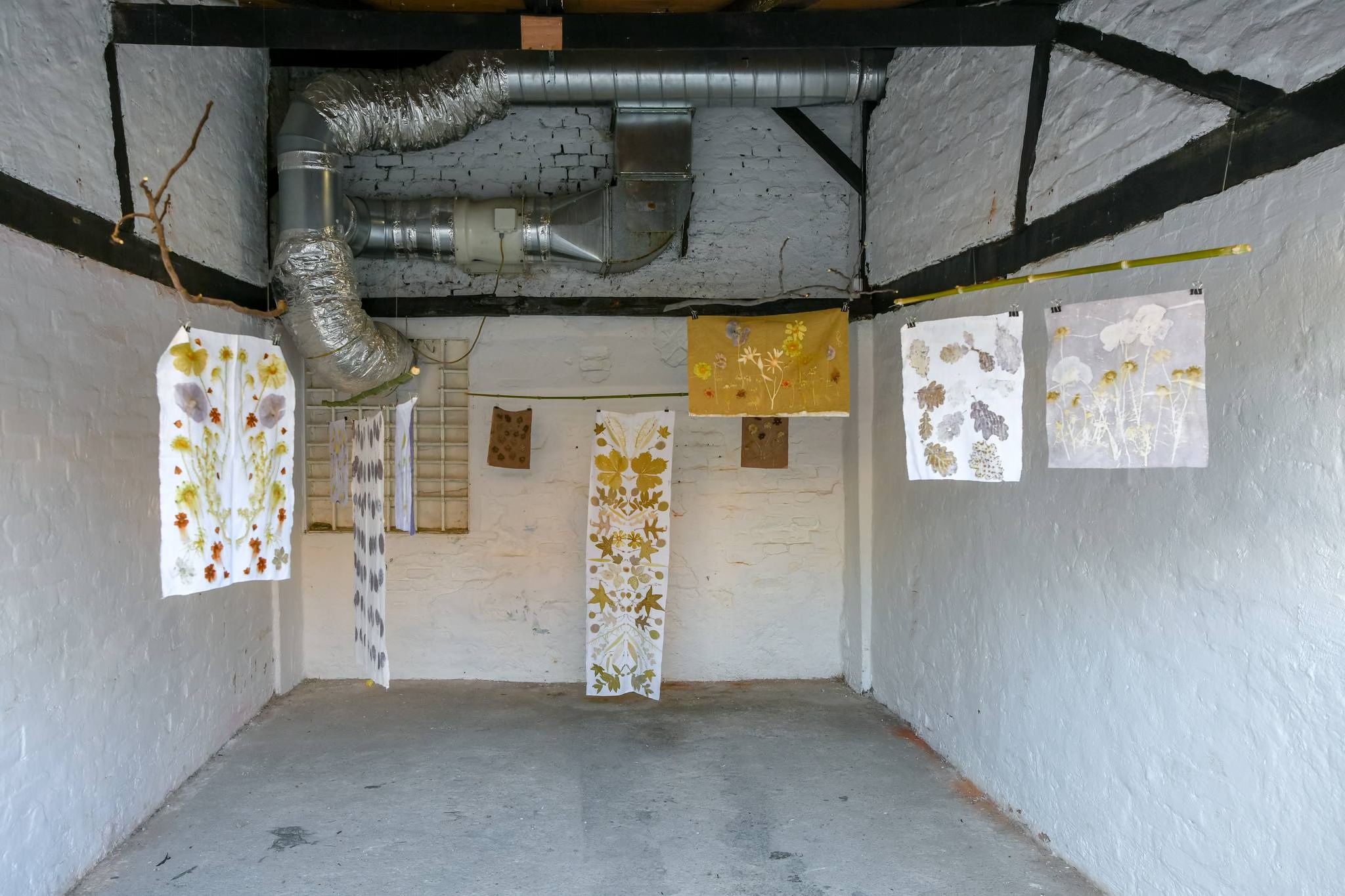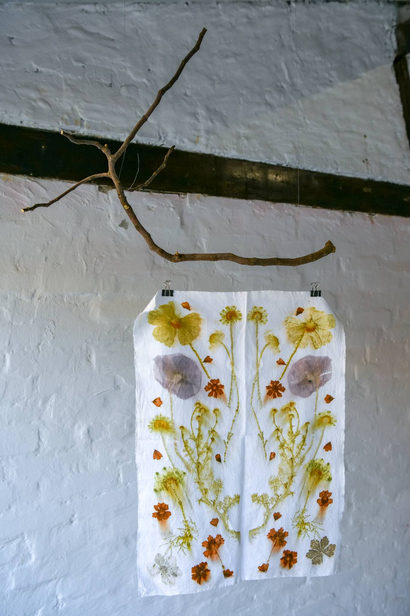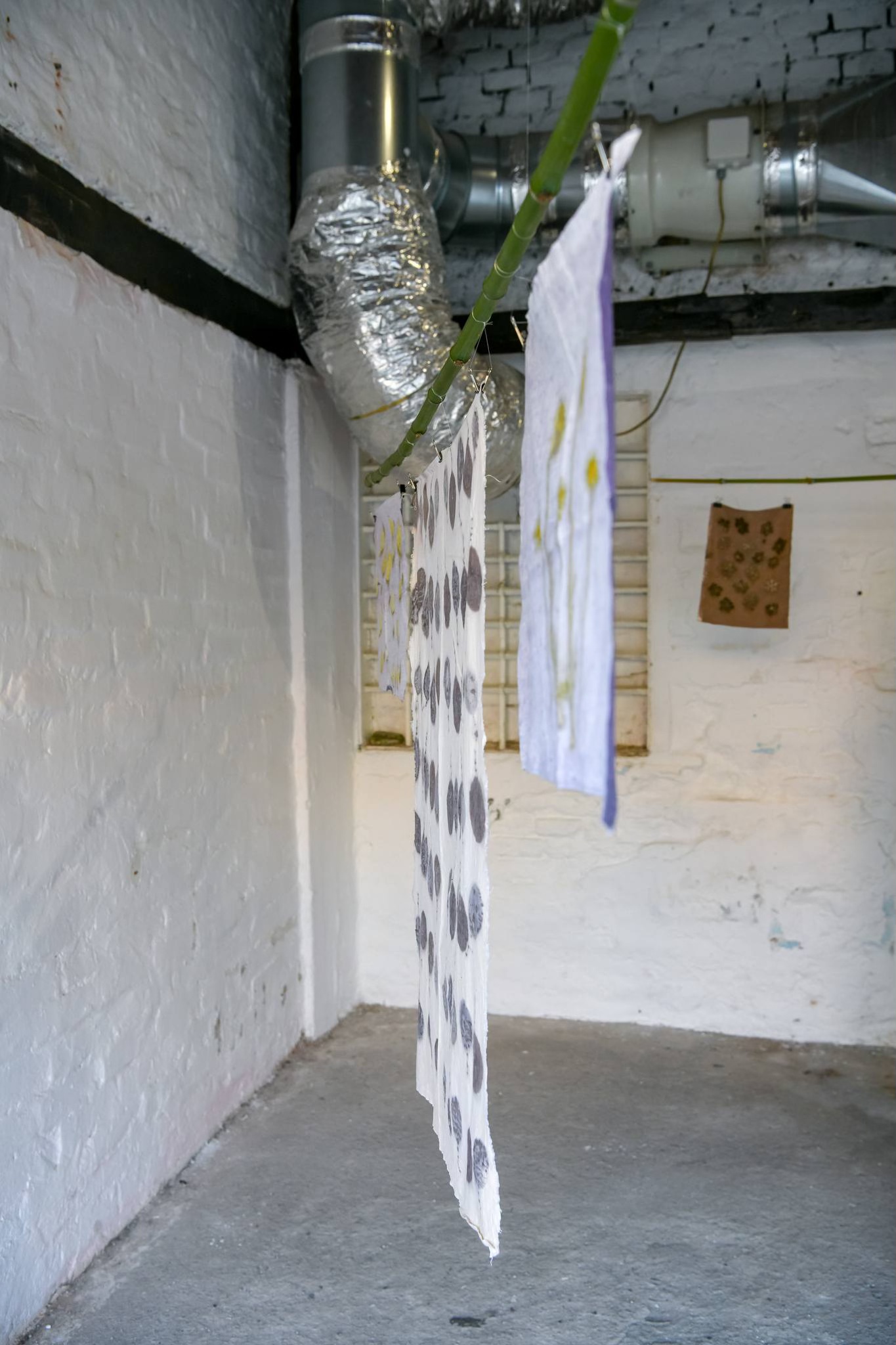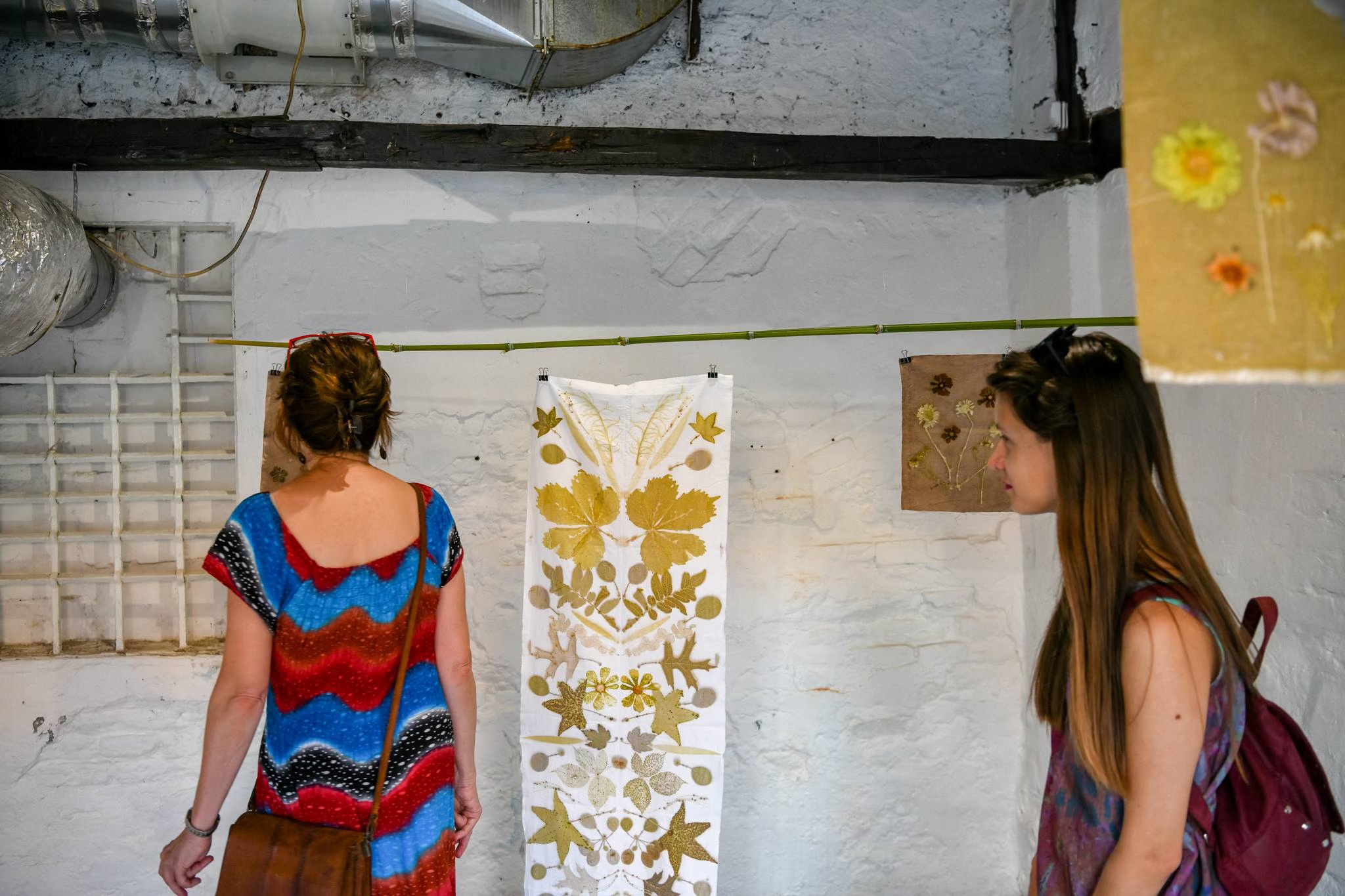 The works from the series Botanical impressions from the author Silvia Kranjec Gajić are examples of works made from one’s own volition and investment of free time into personal development supported by neighbors from the natural environment. Work created by the principle of μεράκι, from one’s desire, have the characteristics of pre-manufactural works: before works were separated (alienated) and put on an assembly line, its author had to be highly artistically and technically skilled. Fabric painted by plants, using the ecoprint technique requires of its author a hand that has been trained over time and that skillfully masters the balance of art and technique. This type of product requires and is explicitly focused on the process which separates it from mass production and makes it long-lasting, more valuable and unique, as can be seen in the extreme precision of the author’s works, some of which give the impression of hyperrealist painting- thus confirming the author’s refinement and dedication to each canvas individually. The principle of μεράκι also opens the gates to experimental methods. This introduces a dose of unpredictability which further enriches the final product; the creation of a perfect composition on fabric by a human hand is possible, with subsequent processing and the action of plants, the inhabitants of nature will create their own unique composition on the canvas, according to their own rules, which evokes a sense of surprise in us (humankind).