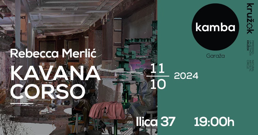 During the artist residence in the Kamba Garage in August and September of 2024, artist Rebecca Merlić explored the urban and social landscape of Zagreb’s historic coffeehouses, their appearance broken through fragmented archival material, personal memories of people who regularly visited them, as well as the physical state of Zagreb’s coffeehouses today. The resulting multimedia work „Kavana Corso” combines the experience of the coffeehouse (Kavana) with the idea of trip or travel (Corso). It suggests exploring the flavors, conversations and experiences that take place within the coffeehouses as a movement, environment, art research, coffee and interpersonal relations.