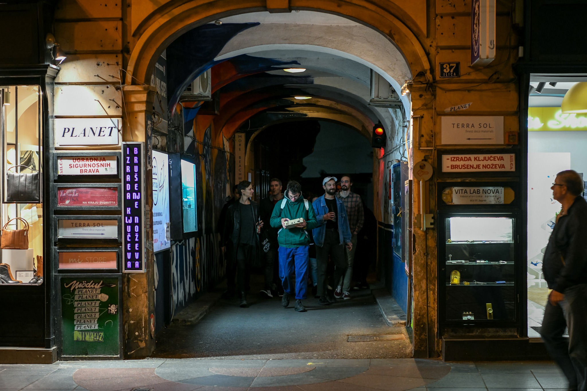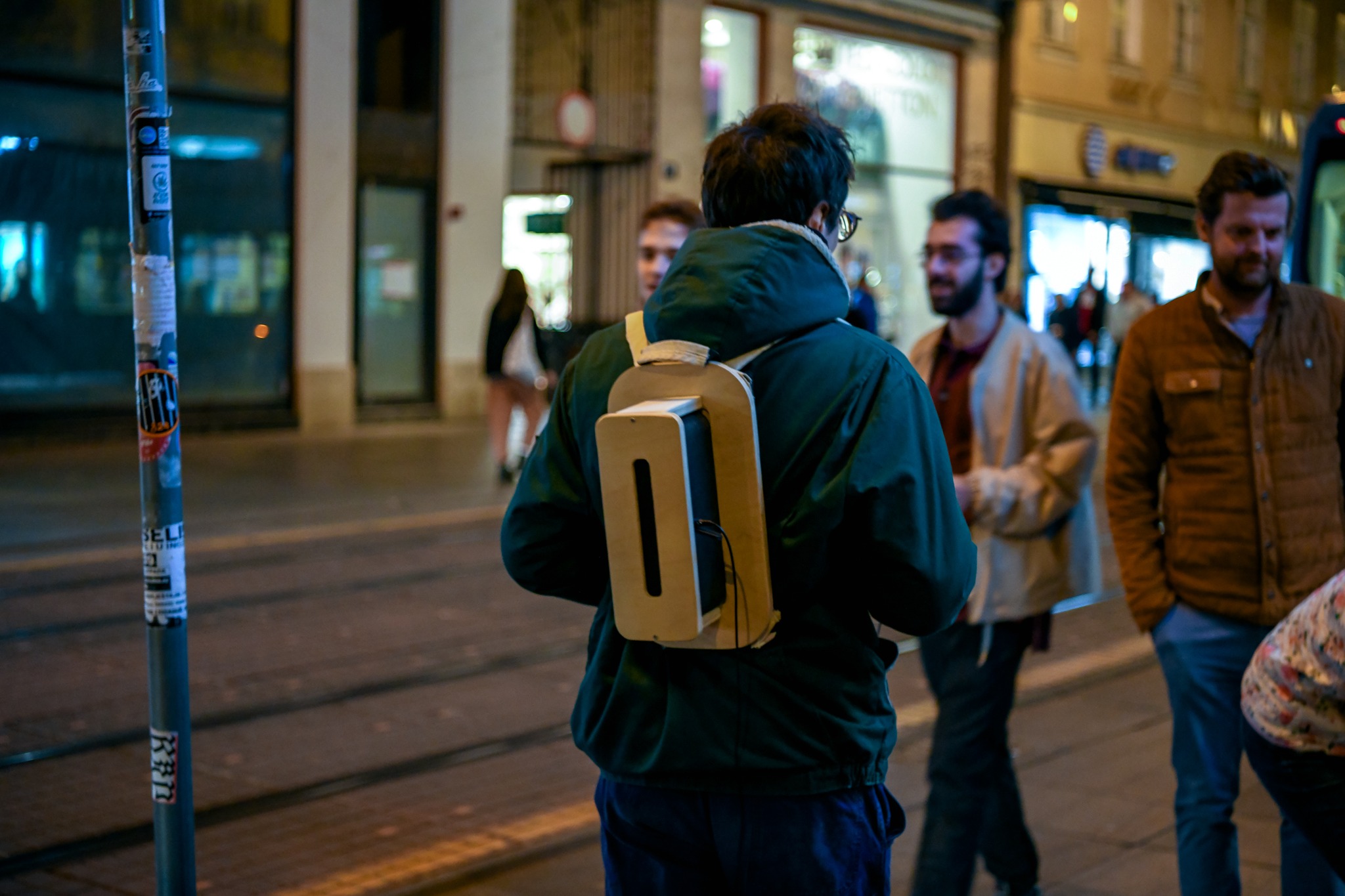 The sequence of elements of a bigger piece act as a theatrical set of sorts, where visitors start a journey in the bird-observatory in Garage Kamba, where the devices for bird-listening surround themselves in sound compositions of human-made sounds, collected from wi-fi and satellite signals and images of birdlife gathered around Zagreb’s urban and natural spaces. After observation, the movement away, guiding the visitors through the soundscape of sounds of another kind, those composed of caught wi-fi signals, on the path to the studio where imaginarium of fictitious machines is used to observe, receive, to record, maybe even understand birds, mixed with memorabilia which could give a hint of the person behind the story being told. The journey ends with the birds echoing through the traffic, the sound almost completely foreign to urban soundscapes, where the debris of natural sounds invade, if only for a moment, the streets, cars, and ears, to draw passers-by closer, not to hunt them, but to gather.
