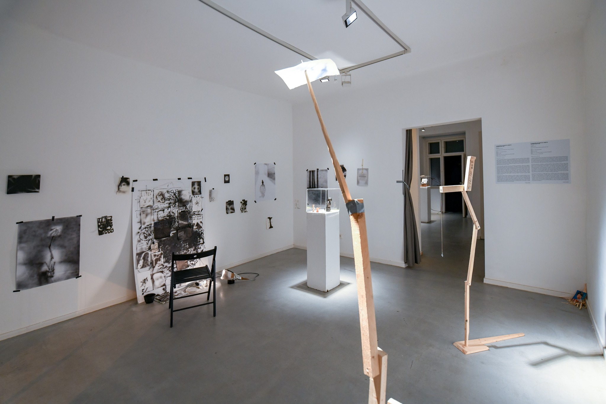 I covered my head as debris rained over me is joint research of three artists during the residential stay in Zagreb’s galleries of Karas and Kamba: Hugo Baranger (FR), Matthias Hurtl (AT), and Matias Romano Aleman (AR), built around the story of an imaginary bird-watcher, set between the two focal points of this person’s life: an observation point (set in Kamba), where the night sounds of feather city-dwellers are gathered from the microphones on its rooftop, and a studio (placed in Karas), where the machines for observing different avian behaviours are developed. Connecting the two sites of the story are the skies, the aether, and the ground to discover the life that flies, and intangible bonds of human communications with natural life, but also the pieces each leaves in the other.