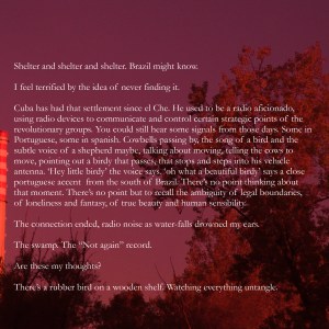 The public space here manifests as a space of research and storytelling, where the three artists connect their different practices by using movement and collecting as tools to discover, share and present their work, separately, and here, together. The life of the imaginary person they created is a factor unknown, the only aspect we can see is in the dedication to the gentle awareness of the existence of creatures that fly, that sing, colorful and far. The rest of the life of this person is seen in small scattered pieces, without explanation or apparent connection. The birds, and a bird-watcher, are all gathered around the thematic axle of debris, on one side manifested as physical debris of human existence, both positive and negative, like collected lists, intimate objects of strangers, and space waste, on the other, intangible debris, like fragmented signals, pieces of distorted sounds, or borrowed lyrics. The Ornithological reserve Savica in Zagreb, where some of the sounds and visuals were collected, is a place where this manifestation of debris is apparent, where human structures and the scent of waste invade natural surroundings of seemingly intact nature.
