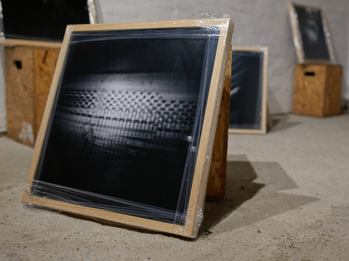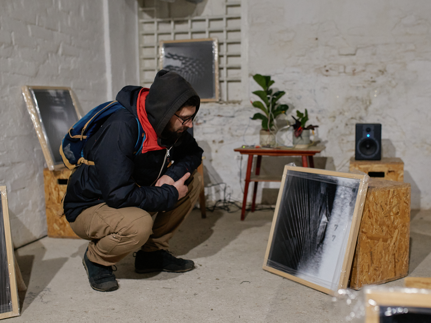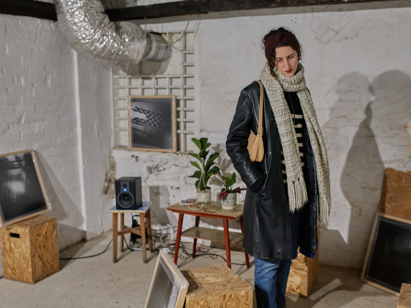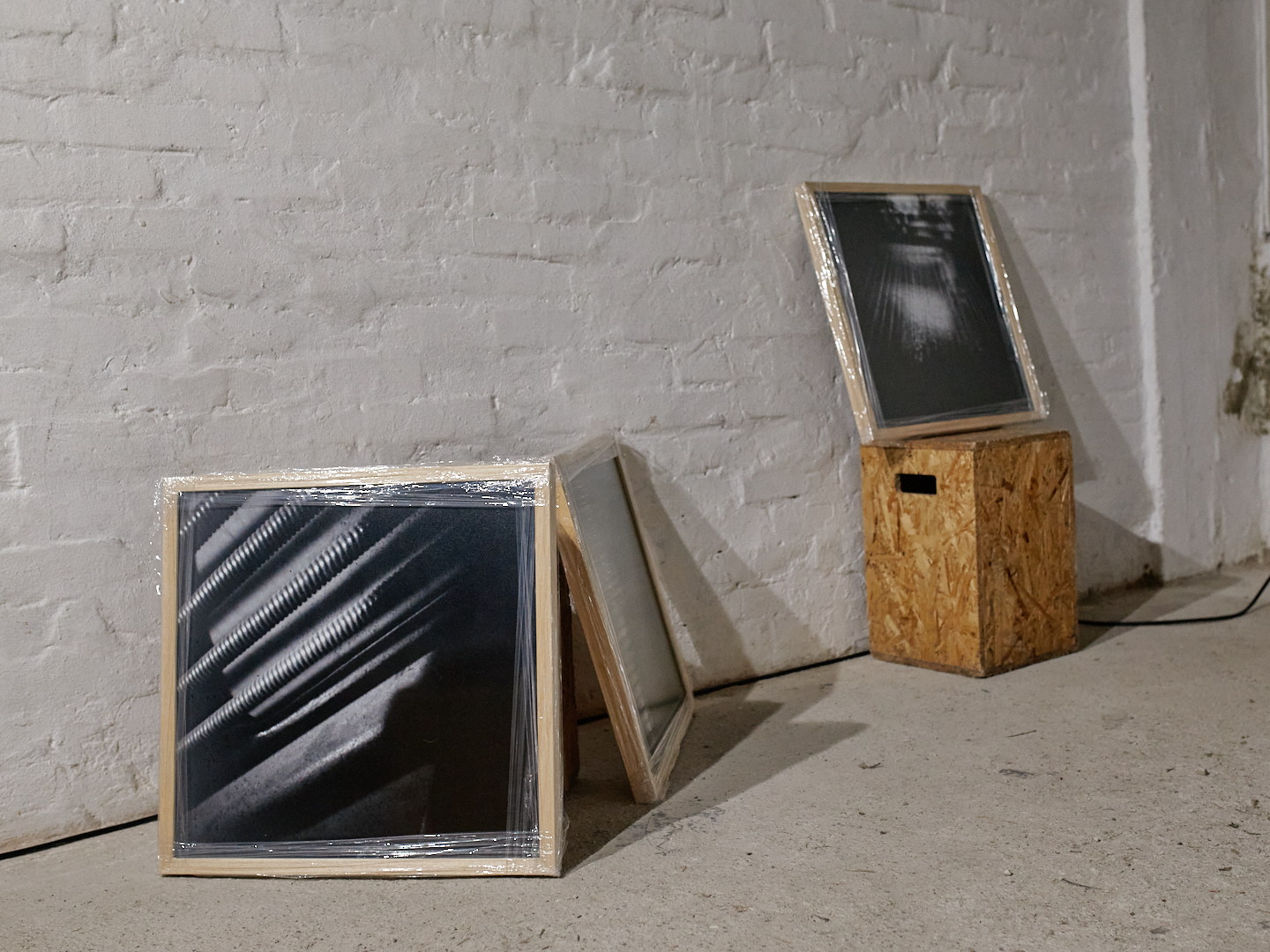 An interactive sound installation for two visitors consists of the manipulation of twelve audio recordings from an abandoned piano on Markgraf-Rüdiger Street in Vienna, using the software: Grainscape, Ribbs, Petri, Sapling, Usine. The recordings are activated by touching the plant’s leaves. Twelve photographs of the piano’s interior were taken with a pinhole cardboard camera using worn-out Potsdam black-and-white film. The duration of each exposure corresponds to the length of a specific sound recording. To view/listen to the installation, you need to bring someone with you who will stand on the sensor that triggers the light.