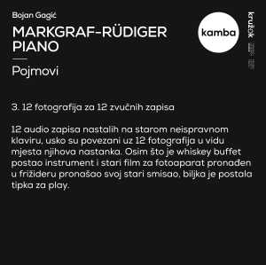 Bojan Gagić began his artistic career in the late 1980s with performances and actions mainly related to the Sarajevo-based group Neue Urform and the Zagreb-based artistic groups Kokowa, Rotor, and Clair Obscure. In the late 1990s, through the MAPA platform (Moving Academy for Performing Arts), he started working on various theater projects, participating in the production of plays, creating multimedia content, and designing sound and lighting. He also collaborated with artist Josip Zanki on several projects that explore the relationship with death. He is the author of numerous exhibitions, installations, and performances in Croatia and abroad. He systematically works in sound art and field recording, publishes poetic writings in literary magazines, and provides technical realization for theater, film, and music festivals. He has composed music for short experimental and animated films, mostly by domestic authors, and designed lighting and sound for theatrical performances. He has also recorded several short experimental films. Along with Miodrag Gladović, he developed the performance technique of luminoacoustics—the conversion of light into sound using the photovoltaic effect of solar panels. He is a co-founder of the Zagreb platform for new sound expressions, Sinelinea.