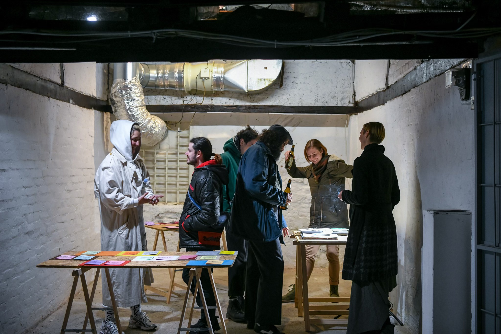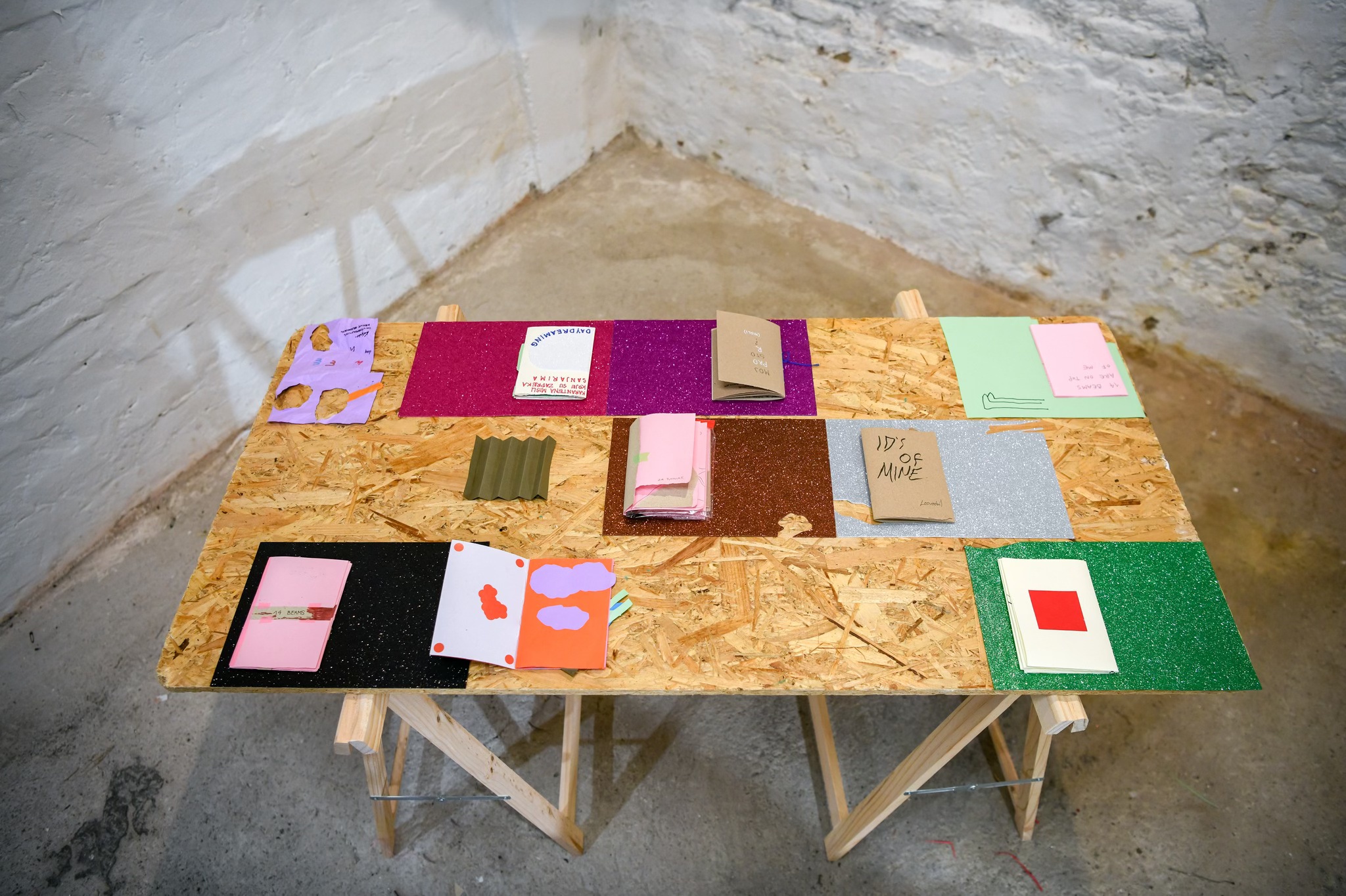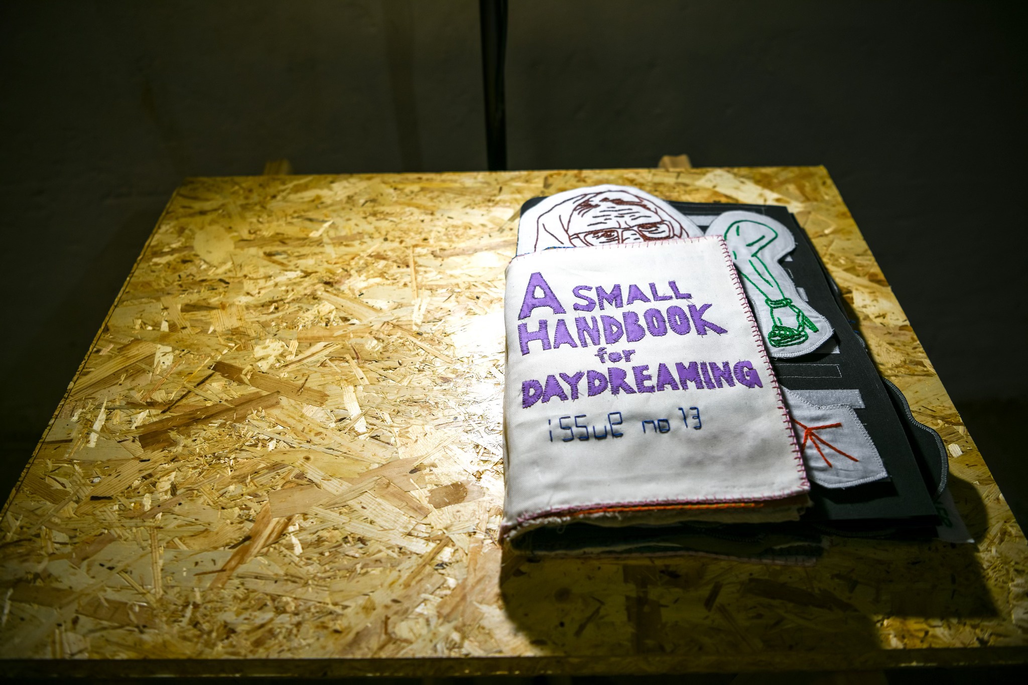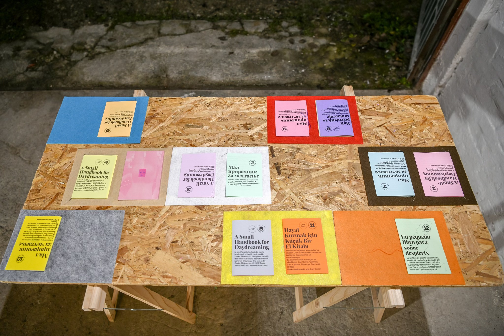 The project has an important collaborative and participatory aspect through which Aleksovski invites other artists to contribute with visual or written material for an issue. The artists Ivana Spiroska, Simona Mancheva and Can Demir were guests in the fourth, fifth and eleventh issue, and the first participatory issue was created as part of a workshop hosted by queerANarchive (Split, Croatia) in March 2022. A Small Exhibition for Daydreaming is divided into three interconnected segments: twelve previous issues, a new collaborative issue with an emphasis on textiles created in collaboration with Stella Mikulin and Željko Beljan, and works created at the participatory zine workshop.