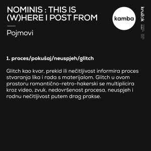 Josip Knežević (b. 1997) completed BA studies in Art Pedagogy at the Academy of Applied Arts in Rijeka. This year he finished his graduate studies in New Media at the Academy of Fine Arts in Zagreb. His work consists of 3D animation, new media and visual art, text and performance. In his graduate work, he deals with the creation of “Nominis” alter ego and its materialization in objects and digital space through video, installation and drag performance.