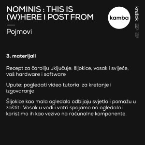 To protect herself, her software, and hardware from tracking, viruses, and hacking, and to maintain balance in her two places of existence, Nominis takes on the role of the witch-artificial-artist. She tries to use magic and knowledge she gathered from internet portals and books, highlighted by imagination and overthinking: