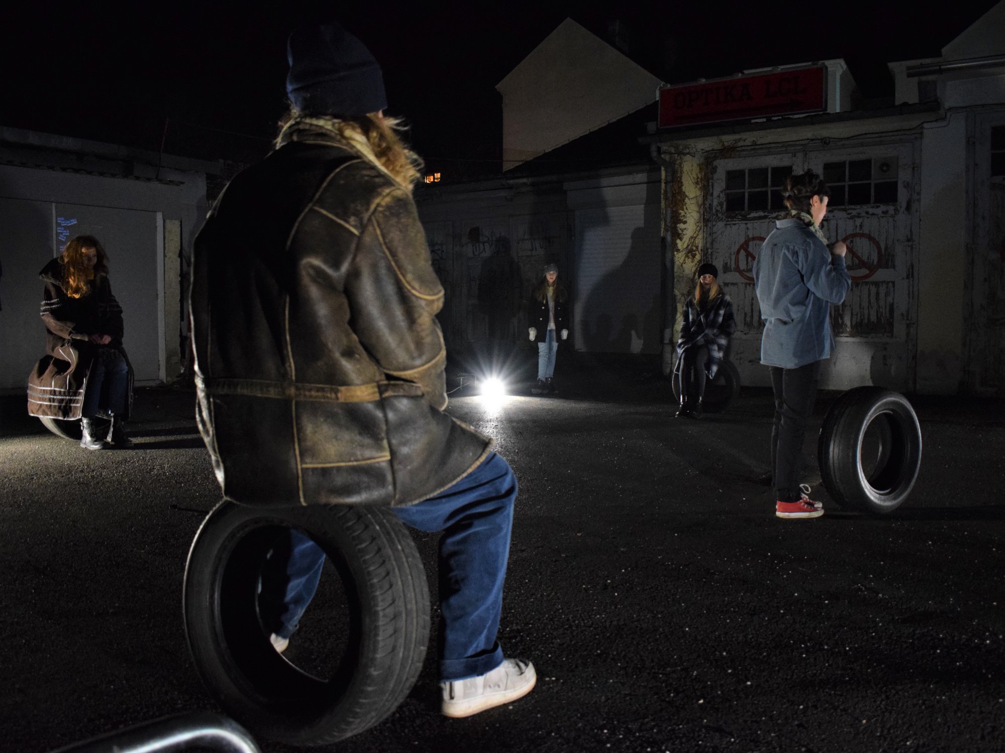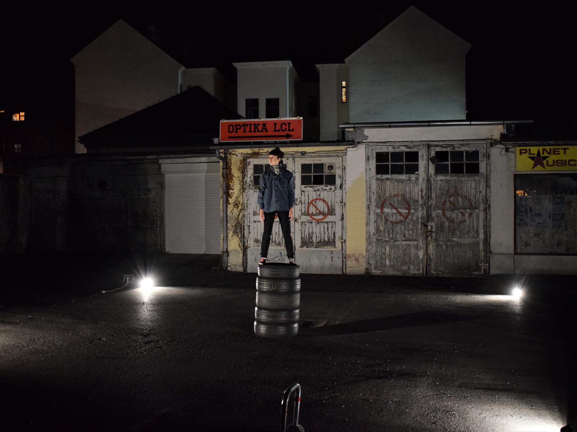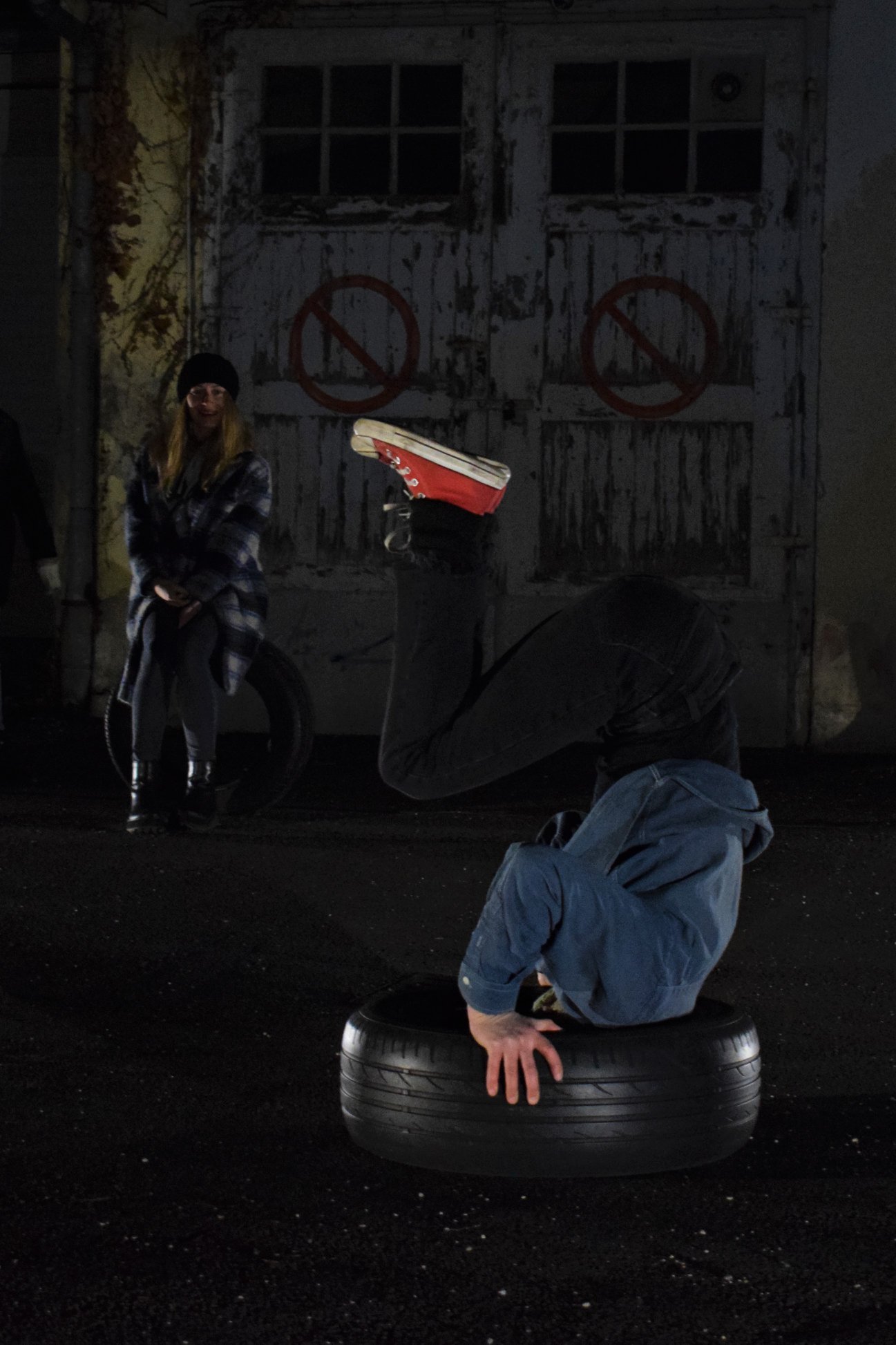 Tapping, scraping, voice, and breath in light, in darkness. Rubber wheels. Rubber, a solid elastic substance obtained by the vulcanization of natural and synthetic rubbers; a rubber tire, the one that gets my hands dirty when it cracks on the freeway away from home; what I always need but never think about. Tired out is a visual and physical participatory act by Israeli artist Darya Efrat, which questions the spontaneous moment of interaction, construction and deconstruction in creating a visual landscape and a point of reflection for performance observers/participants, combining movement, dance, and circus in a dialogue between a woman and a tire. The performance is a part of a residency in Zagreb focused on collecting, developing, processing and sharing the research process that Efrat has collected over the past year.