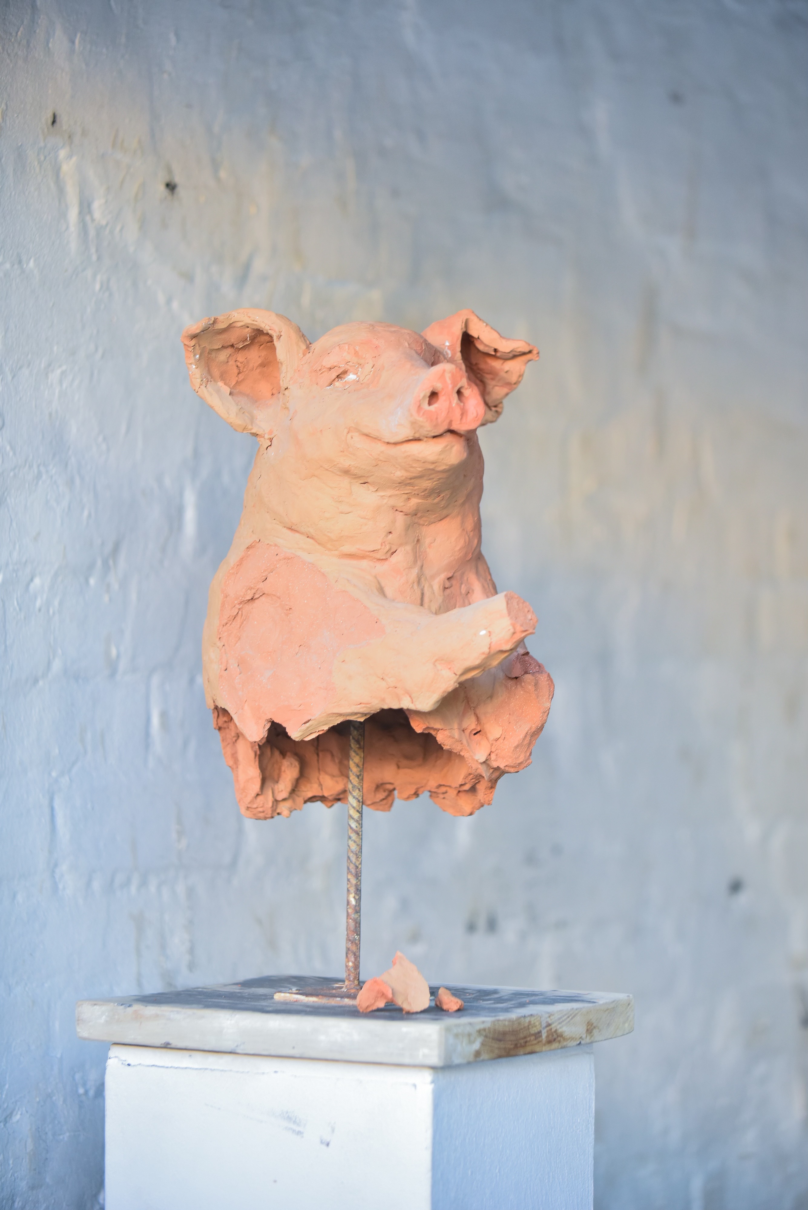Palmina Roglić embarks on a calculated regression. Fascinated by the mind’s infinite capacity to fragment and find meaning, she engages in an irresistible act of introspection, summoning painful and transformative periods of her adolescence. She traces the elusive currents of the subconscious. Palmina redefines painting through the sense of touch, employing tactile materials like wax and plaster. Instead of a two-dimensional depiction on a surface, her work becomes an object that carries materiality. The matter, as the artist imagines, contains an almost magical essence. Like the works she creates, it exists in a constant process of destruction, transformation, and ultimately—the formation of meaning from fallen fragments.
